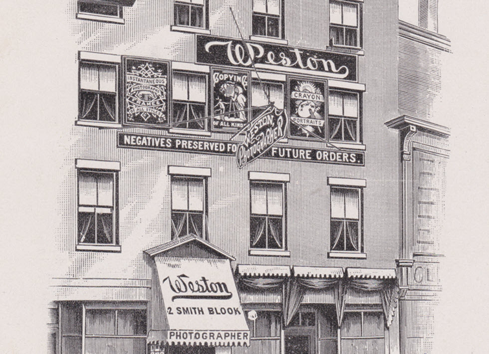 The expanding popularity of inexpensive photographic portraits of the “cabinet” size (4.25 x 6.5 inches) in the 1880s and 1890s increased competition among photographers. The printed backs of the portrait card offered a prime venue for advertising; not just text but often an architectural renderin…