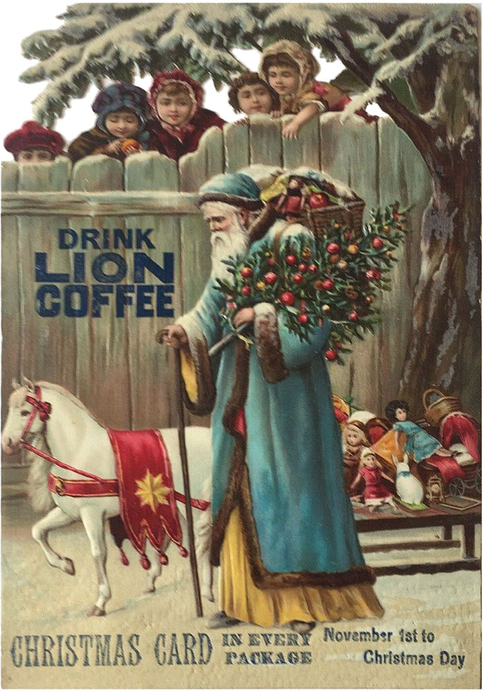 Lion coffee often correlated its offers with the season . . . Christmas cards, Easter cards, etc.