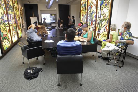 Diane DeBlois, editor of ESA’s Ephemera Journal, arrived at the museum with her husband and business partner, Robert Dalton Harris. The couple are co-proprietors of aGatherin’ based in West Sand Lake, New York. Ephemera Society member Kara Accettola of Little Sages Books, also attended. Participants observed how The Wolfsonian uses art and ephemeral artifacts to augment university students’ understanding of the cultural history of America during the Great Depression.