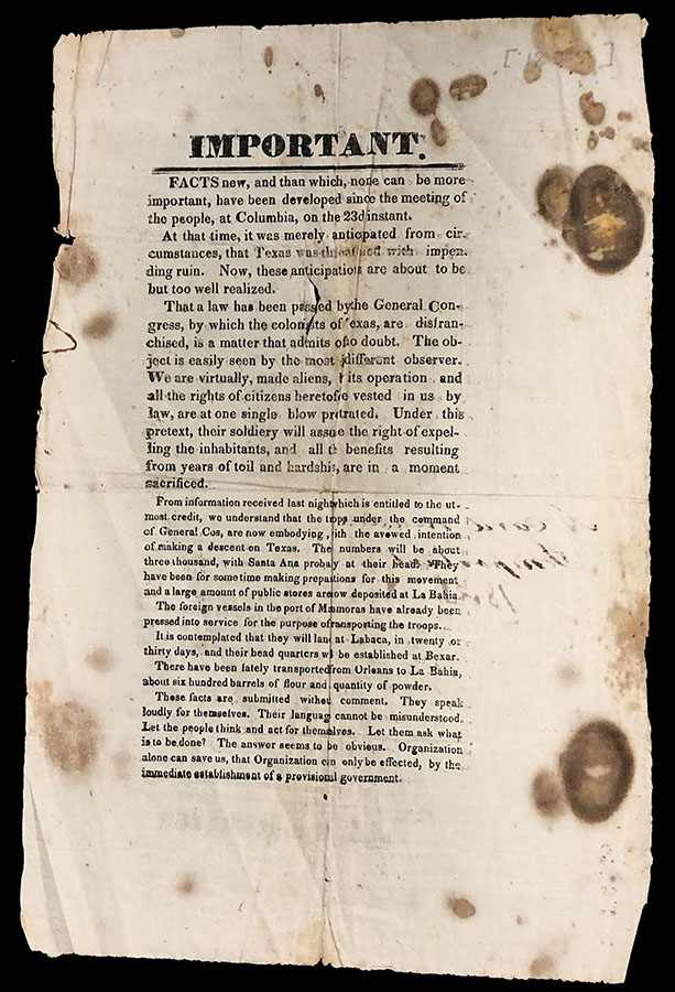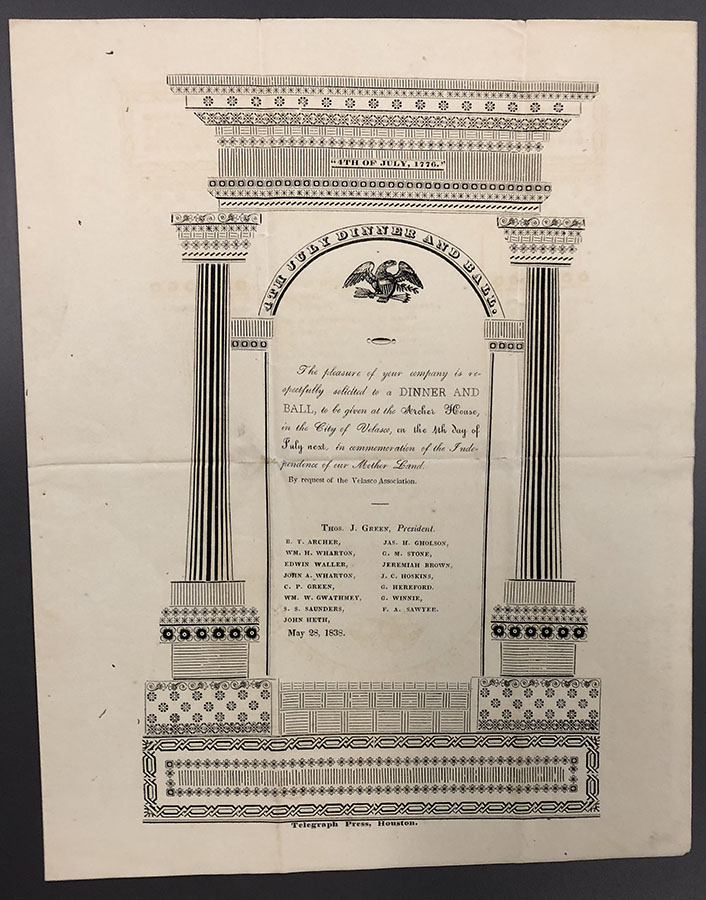 The Briscoe Center used to specialize in Texiana (and Texas holdings are still the strongest), but has covered the whole country since 1991. Head of Public Services Margaret Schlankey emphasized that their motto is, “No records, no history.” The center collects, preserves, and explores the history of the U.S. news media, the energy industry, the flag, American mathematics, and much more, continually inventing ways to integrate their holdings into the UT curriculum. To allow us “to interrogate the document,” the librarians had brought out several boxes from the Bexar Archive and invited us to explore the files and photograph whatever caught our eye. It was a feeding frenzy! A 60-page 1901 photo travel diary was especially impressive — covering in detail such topics as California oil extraction and racial attitudes of the period, including exactly how African-Americans loaded cotton onto Mississippi River boats.