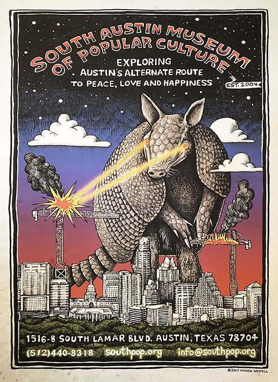 SouthPop has been keeping Austin weird since 2005 — collecting and displaying the distinctive posters and other ephemera of the live music scene in the city. Guitarist Freddie Steady KRC, Vice-President of SouthPop, performed wonderfully for us, along with Champ Hood on fiddle.