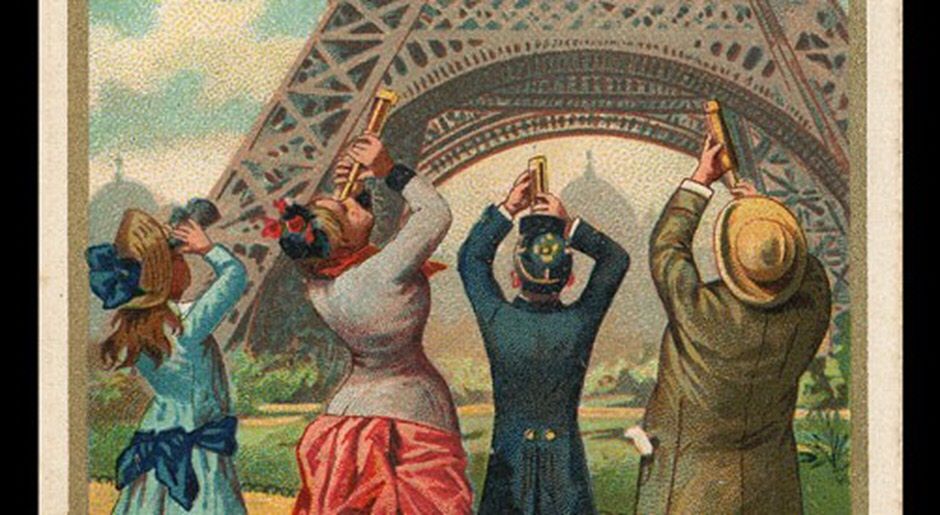 The Liebig company put out a wonderful little set of six trade cards which detail the story of a family’s trip to the Eiffel Tower, no words needed to fully understand.