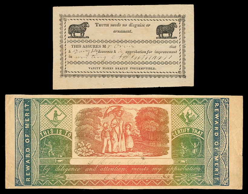 Printed certificates can be simple or elaborate in design, serious and statesmanlike or comical, large or small. Various types are collected.