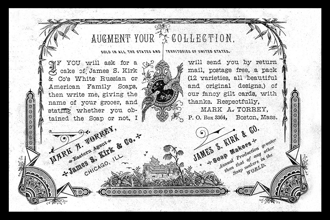One interesting aspect of studying trade cards and other sorts of ephemera is that insights can be gained from those examples of ephemera which reference ephemera itself. This includes text which reveals how items were produced, circulated, offered as premiums and used to promote. Here are some examples; many others are out there awaiting scrutiny.