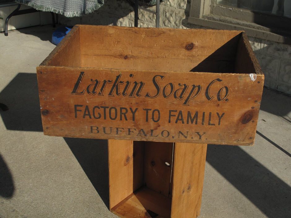And it all began in 1875 when John Larkin launched his own soap company in Buffalo. His brother-in-law, Elbert Hubbard, provided the sales savvy. Not long after they were joined by a very young Darwin Martin, their first office person. They made a lot of money in the last part of the 1800s, to the extent that the company hired Frank Lloyd Wright to design the Larkin Administration Building in Buffalo in 1904. And Darwin Martin hired him to design the Darwin Martin House, which still stands. Larkin was a serious business generating serious money.