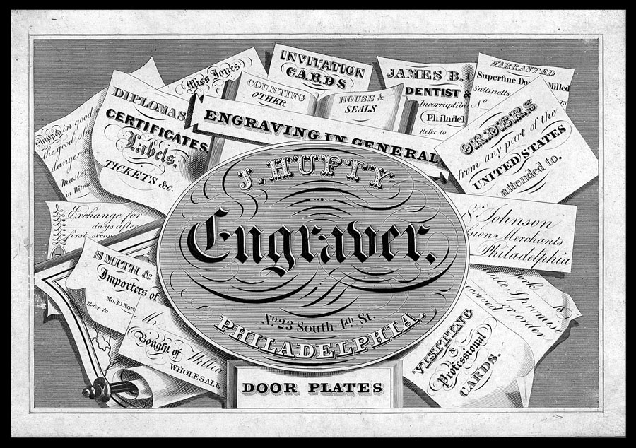 Many 19th century promotional cards and advertisements for printing and engraving companies list of the sorts of things they had produced, or wished to produce. I always like to take a close look at such listings, and am often rewarded with new information.